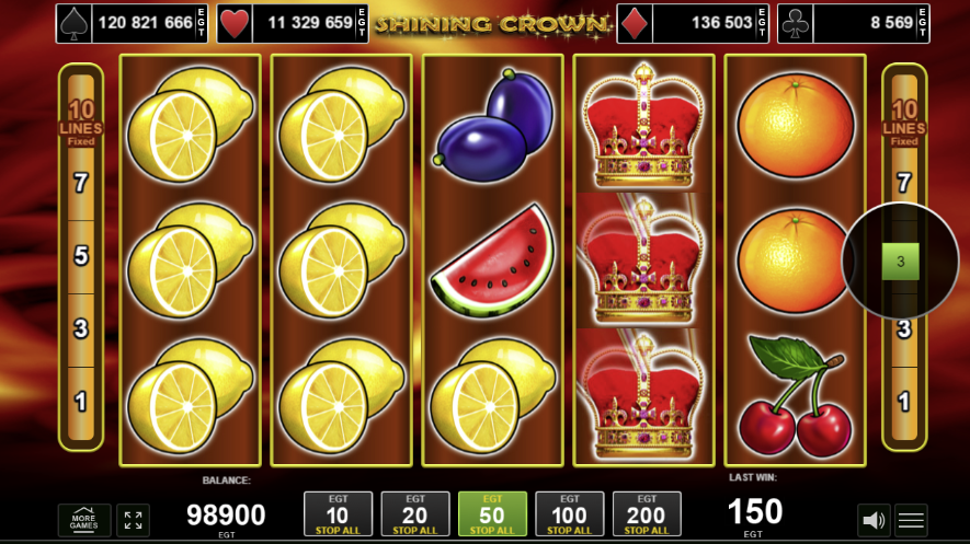 Le dieci linee di pagamento fisse di Shining Crown offrono numerose possibilità di vincita.